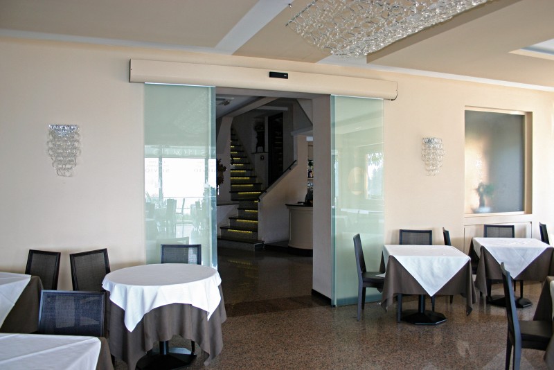 Közkedvelt megoldás az érintés nélküli kapcsoló, mellyel higiénikusan, biztonságosan nyitható az üvegajtó.